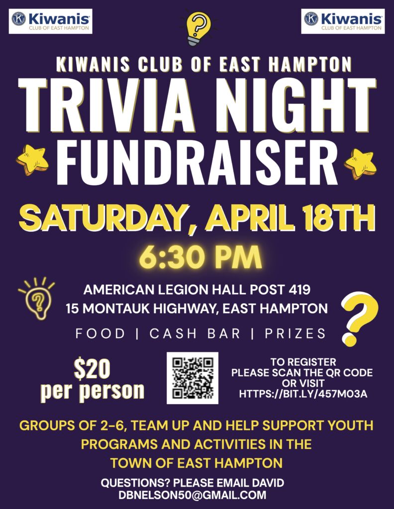 Come join the Kiwanis Club of East Hampton for our first ever Trivia Night Fundraiser!